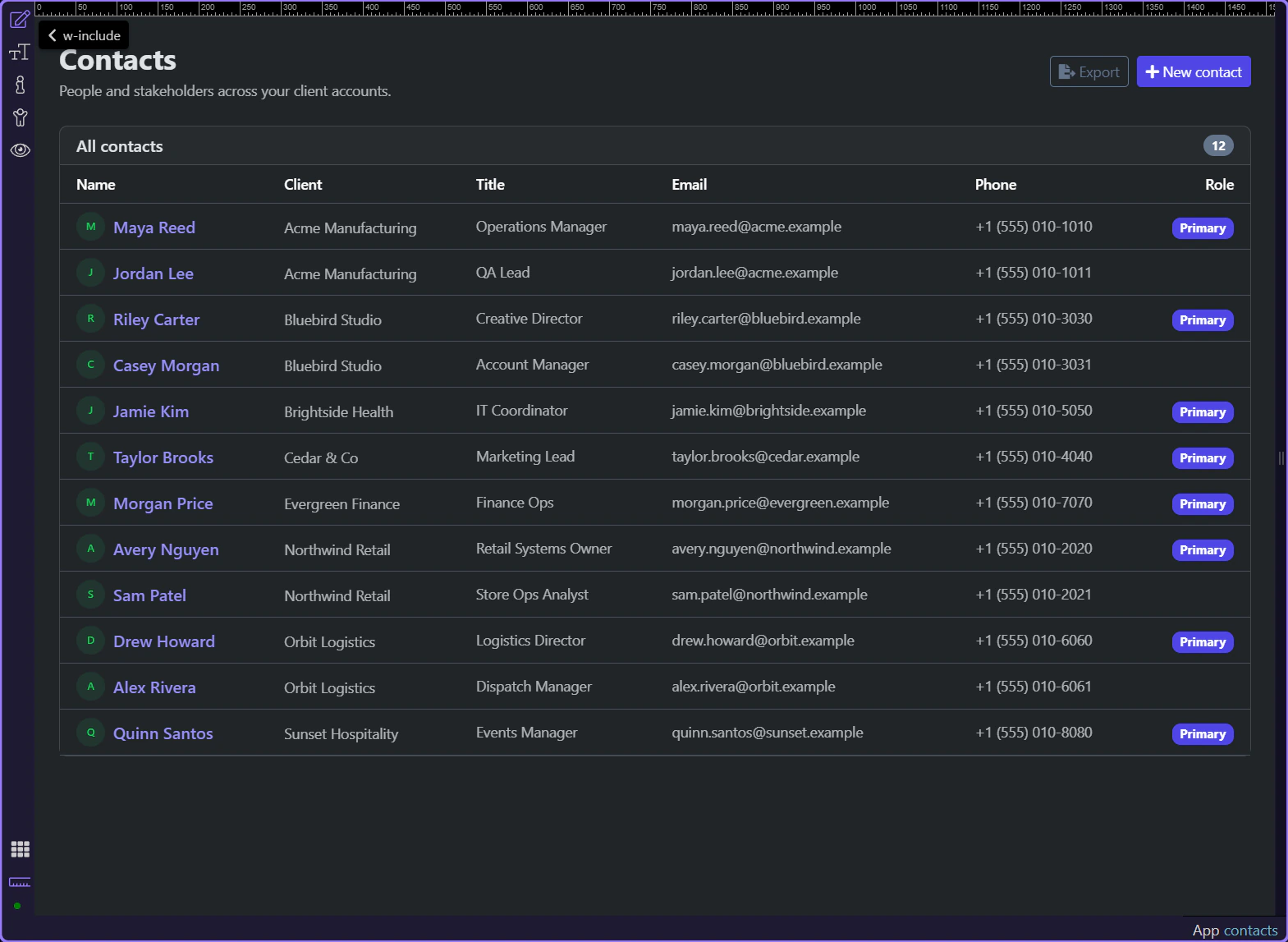 Section titled “Introduction”The contacts pages are useful App Connect examples because they turn one continuous data flow into two readable pages. A repeated contacts list links to a route-aware detail page, and the detail page resolves that route value into one loaded record without custom glue code.