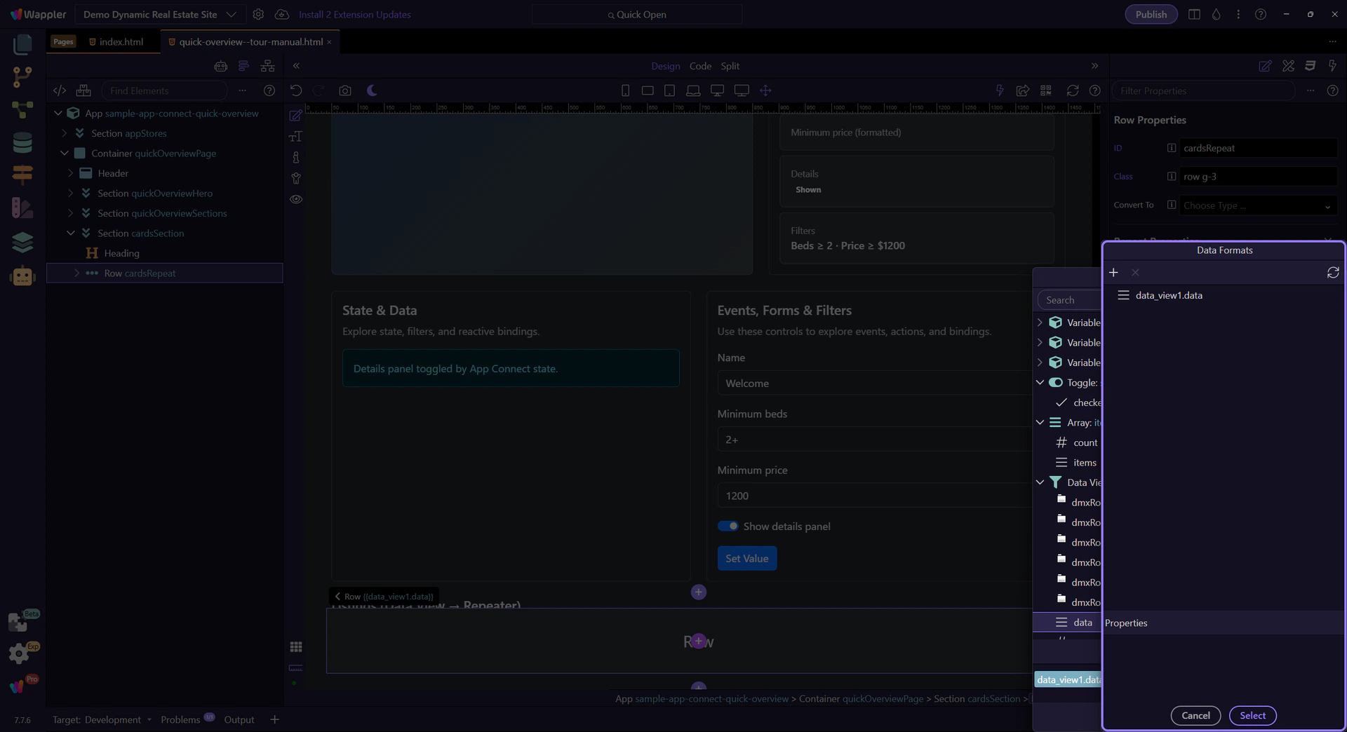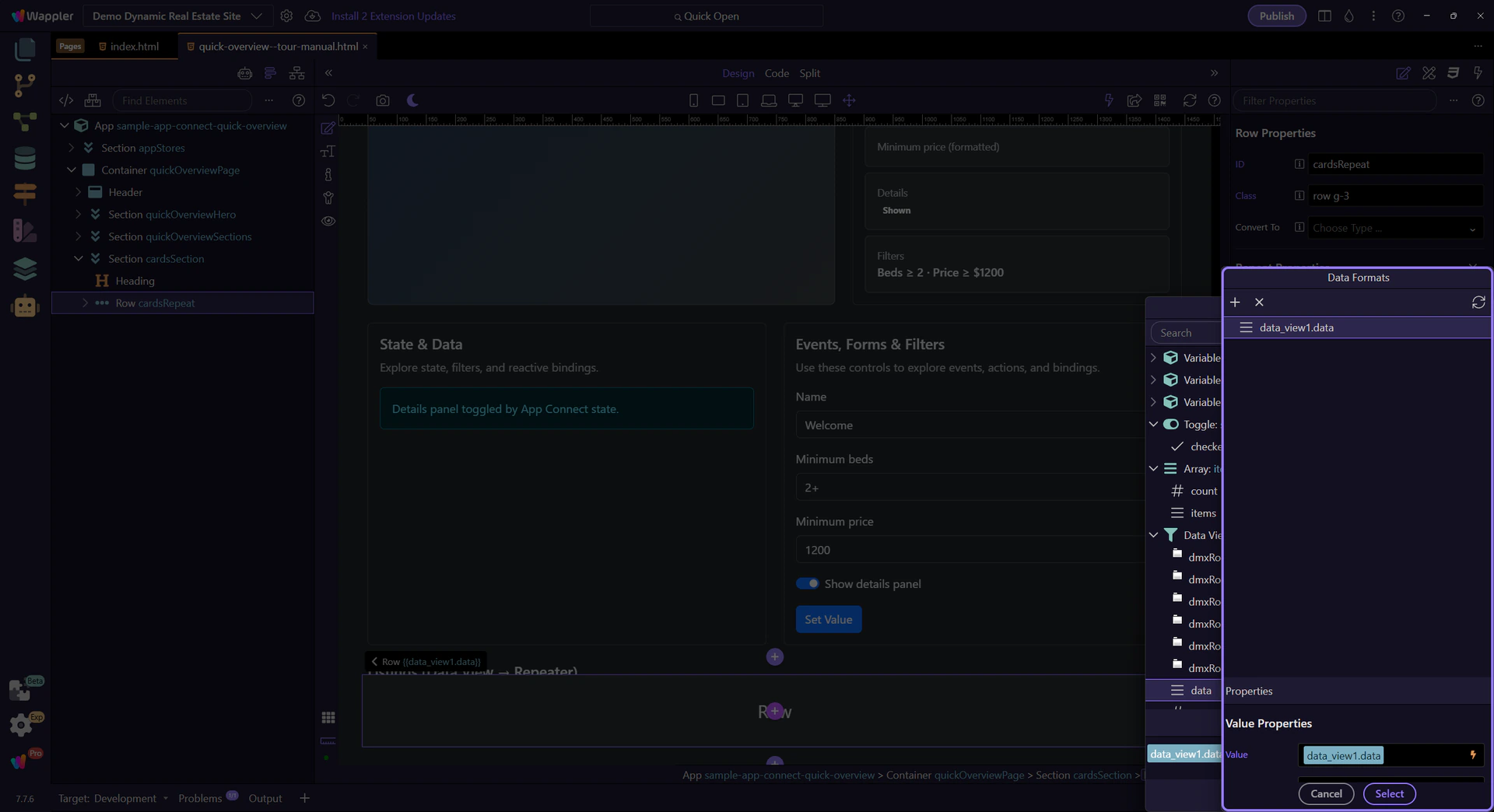 Section titled “Launching from the Data Bindings Picker”This tour starts in the Data Bindings Picker, then moves into the Data Formatter from there.