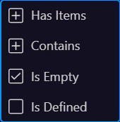 Section titled “Formatting categories (by data type)”Formatter options are grouped by the current value type. If you don’t see a formatter you expect, convert the value first (or pick a formatter that matches the current type).