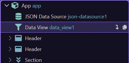 Section titled “Data Picker overview”Choose json-datasource1.data as the source list. This powers the Data View.