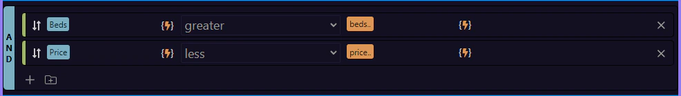 Section titled “AND / OR groups”Groups let you combine rules with AND/OR for more complex filters. This step matters because AND / OR groups is part of Popup Expressionbindingspickup Query, and understanding that context makes the next action easier to repeat in your own project.
