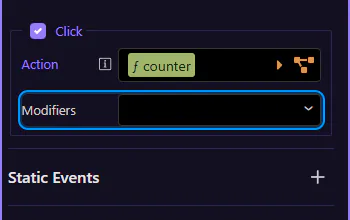 Section titled “Modifiers (optional)”Modifiers let you control default behavior and propagation without writing manual code.