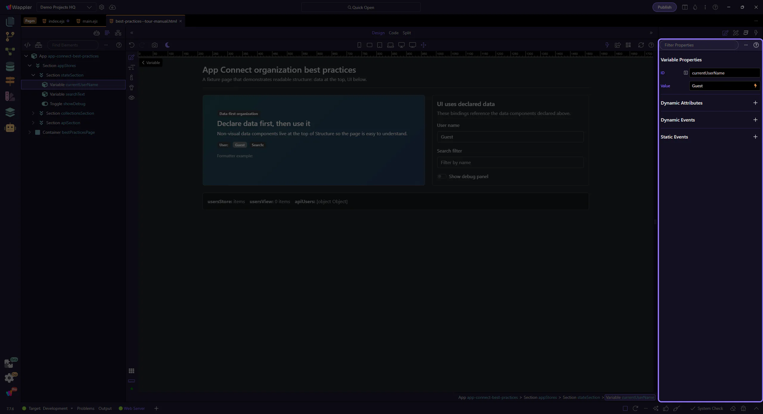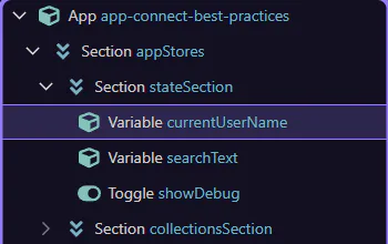 Section titled “State Variable”This Variable holds a piece of state used in bindings (for example: currentUserName.value). We’ll select it to review its ID and value.