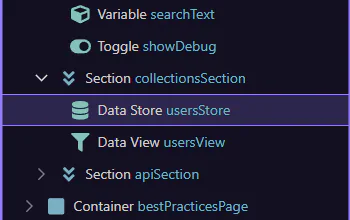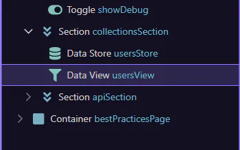 Section titled “Data-first structure”Non-visual data components (state, collections, API) belong at the top of the page so everything below can reference them clearly.