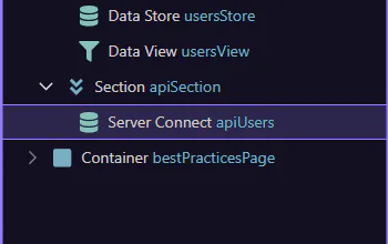 Section titled “Server Connect component”This Server Connect component loads data from the server. We’ll select it so it’s easy to find, review, and avoid duplicating API calls in UI sections.