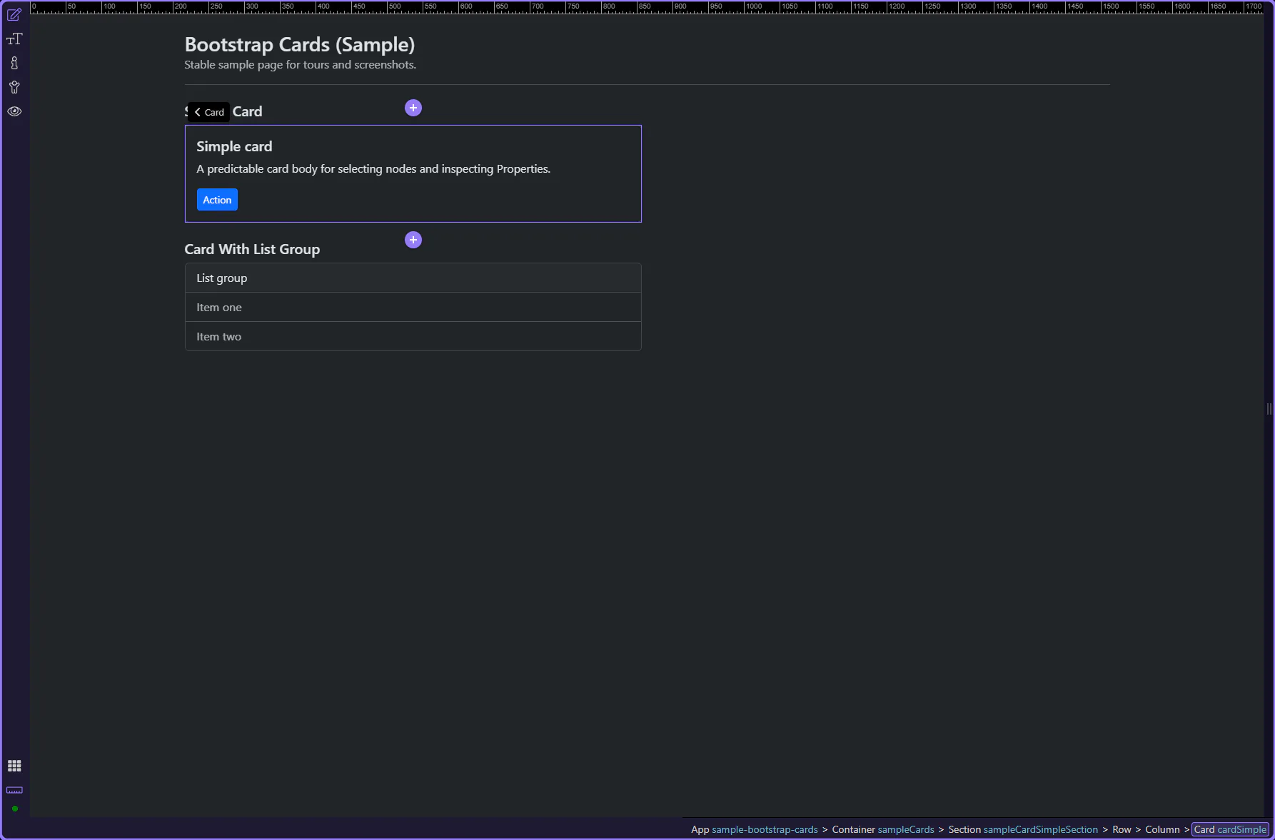 Section titled “Introduction”In this tour we’ll look at common Bootstrap card patterns and the key Properties to configure (structure first, then style).