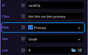 tip: Buttons inside cards are still regular Bootstrap buttons—configure them like any other button.