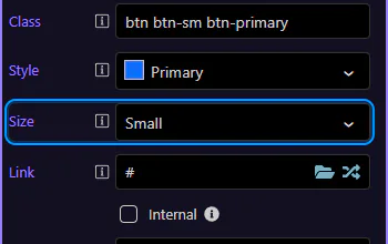 Section titled “Button: Size”Use Size to switch between default, small, and large buttons. This step matters because Button: Size is part of Selection Panels Properties Anchorbtnsizen, and understanding that context makes the next action easier to repeat in your own project.