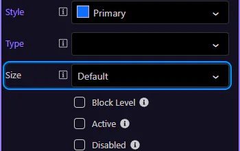 Section titled “Button: Size”Use Size for compact toolbars or prominent primary actions. This step matters because Button: Size is part of Selection Panels Properties Btnsizen, and understanding that context makes the next action easier to repeat in your own project.
