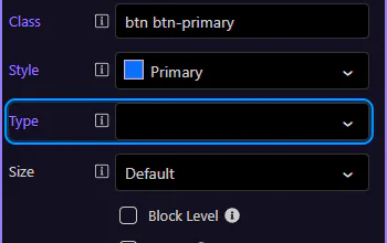 Section titled “Button: Type (forms)”Use Type to control form behavior. Use button for normal actions, and submit only when the button should submit a form. This step matters because Button: Type (forms) is part of Selection Panels Properties Buttontype, and understanding that context makes the next action easier to repeat in your own project.