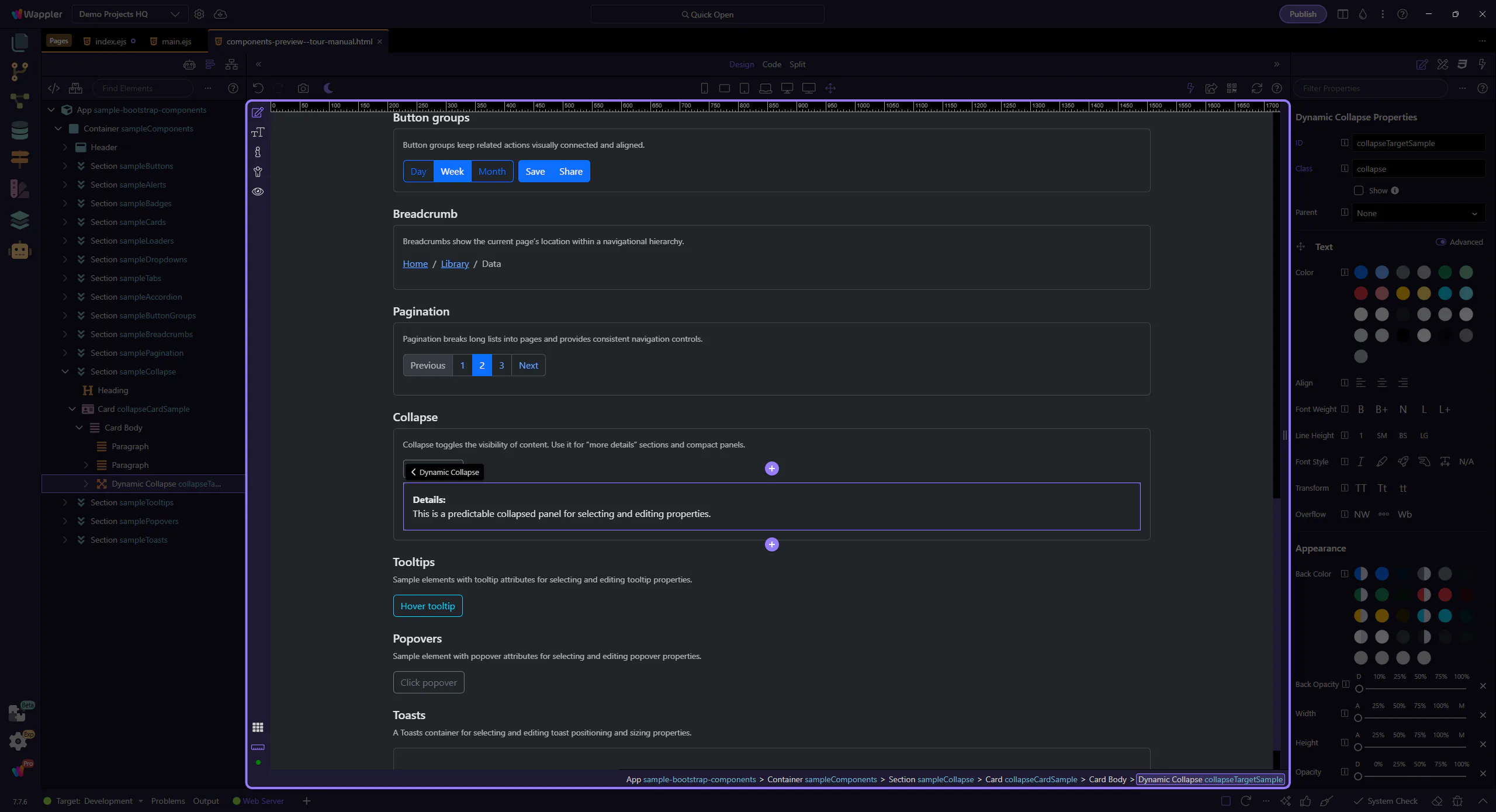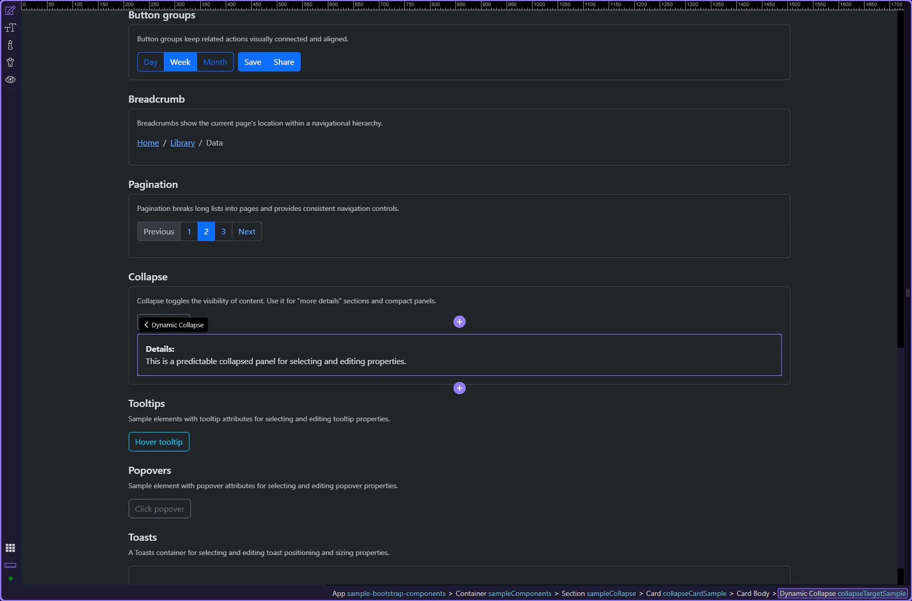 Section titled “Wrap-up”Collapse is ideal for optional content and progressive disclosure. For accordion-style layouts, link panels to a parent so behavior stays consistent.