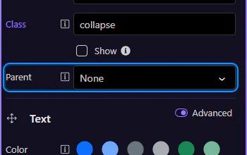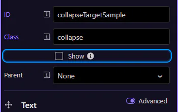 Section titled “Collapse: Parent”The Parent option links this collapse panel to an accordion container. With a parent set, opening one panel can automatically close other panels within the same accordion.