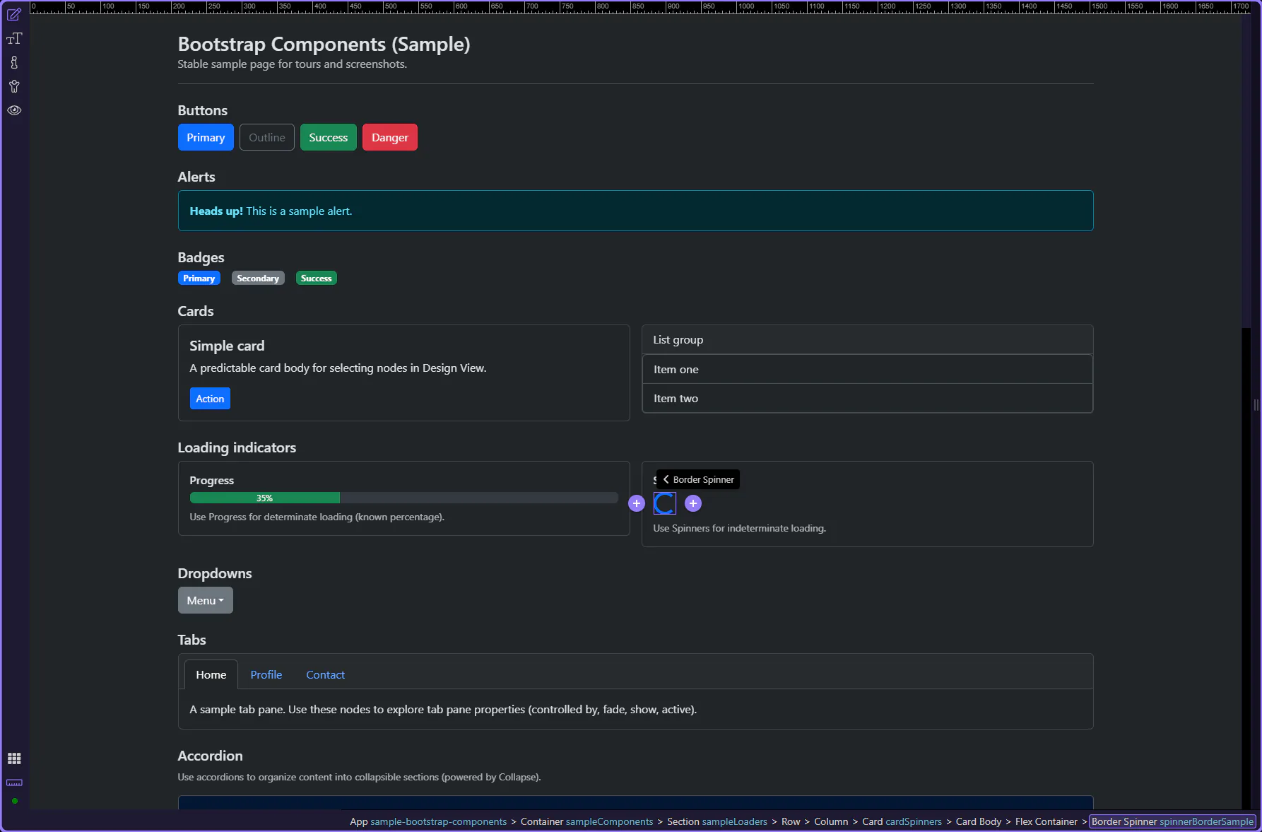 Section titled “Border spinner”Border spinners are a compact indicator for indeterminate loading. This step matters because Border spinner is part of Design View, and understanding that context makes the next action easier to repeat in your own project.