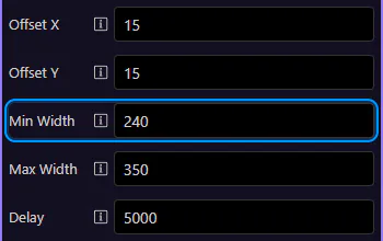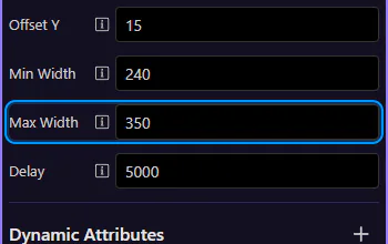 Section titled “Toasts: Max Width”Max Width caps the toast size for long messages. This step matters because Toasts: Max Width is part of Selection Panels Properties Toastsmaxwidth, and understanding that context makes the next action easier to repeat in your own project.
