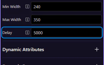 Section titled “Toasts: Delay”Use Delay to control how long a toast stays visible (in milliseconds). This is the default when you trigger toasts from actions.
