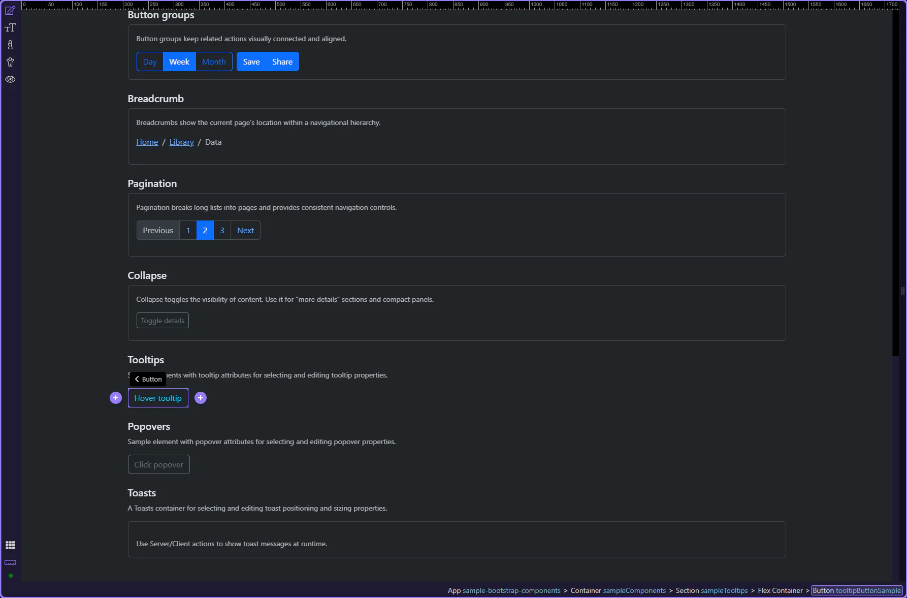 Section titled “Tooltip example”This sample button is selected so you can explore tooltip settings. This step matters because Tooltip example is part of Design View, and understanding that context makes the next action easier to repeat in your own project.