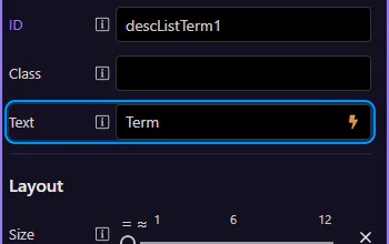 Section titled “Term text”Edit the Text field to change the term content. This step matters because Term text is part of Selection Panels Properties Desclisttermtext, and understanding that context makes the next action easier to repeat in your own project.