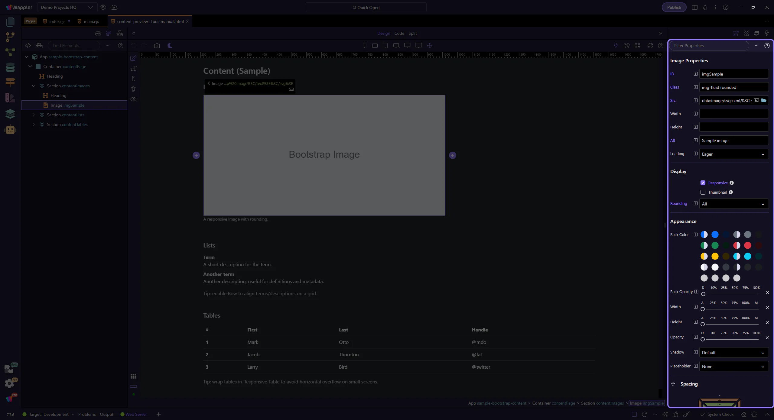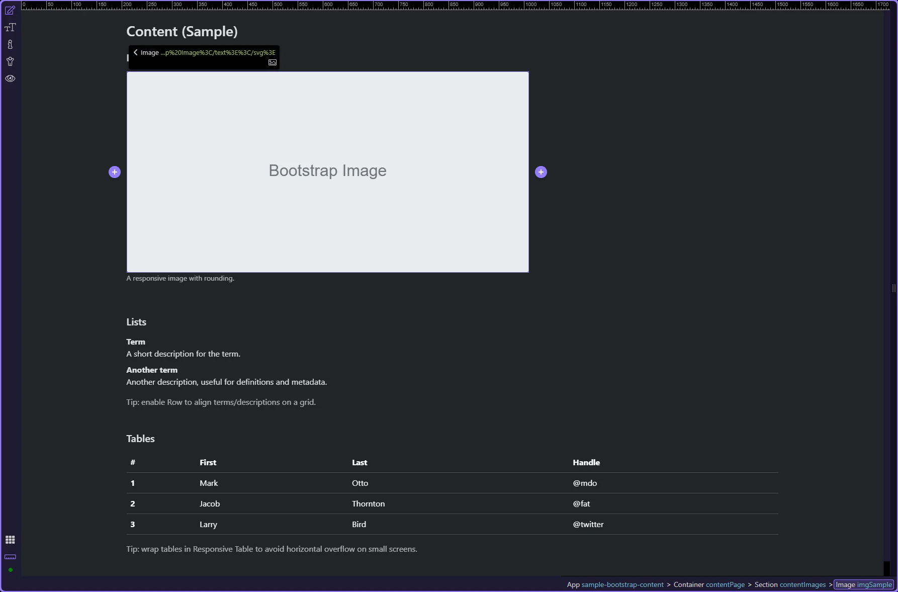 Section titled “Image: Responsive”Use Responsive to add img-fluid so the image scales with the container. This step matters because Image: Responsive is part of Selection Panels Properties Imgresponsive, and understanding that context makes the next action easier to repeat in your own project.