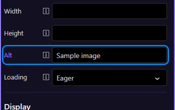 Section titled “Image: Alt (accessibility)”Use Alt for accessibility and SEO. Write descriptive alt text for meaningful images. This step matters because Image: Alt (accessibility) is part of Selection Panels Properties Imgalt, and understanding that context makes the next action easier to repeat in your own project.