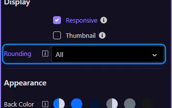 Section titled “Image: Rounding”Use Rounding for rounded corners or circle images. This step matters because Image: Rounding is part of Selection Panels Properties Imgelementrounding, and understanding that context makes the next action easier to repeat in your own project.
