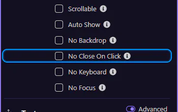 Section titled “Modal: No Close On Click”Disable click-outside-to-close only when users still have a clear intentional dismissal. This step matters because Modal: No Close On Click is part of Selection Panels Properties Modalnocloseonclick, and understanding that context makes the next action easier to repeat in your own project.