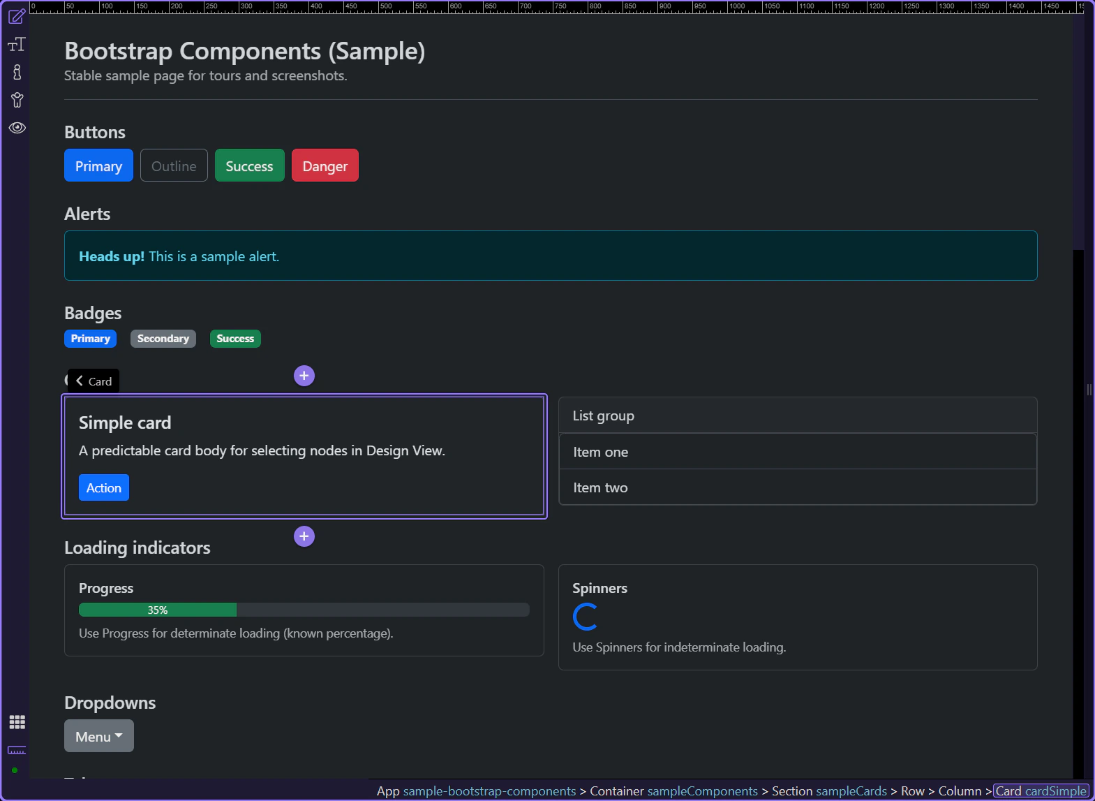 tip: This is the same concept as Bootstrap’s spacing utilities (m*, p*, mt-, px-, etc.), surfaced as a single control in Properties.