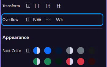 Section titled “Text: Overflow”More options appear under Advanced, including Overflow for nowrap/truncate/text-break. This step matters because Text: Overflow is part of Selection Panels Properties Textoverflow, and understanding that context makes the next action easier to repeat in your own project.