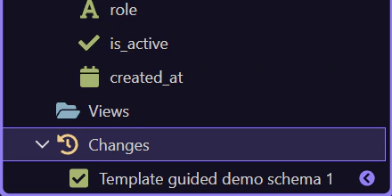 These branches are related, but they do different jobs. Create Seed and Create New Template help you bootstrap or reuse data-oriented setup. The Changes branch tracks structural migration history. When seed files exist, the Seeds branch becomes the place to apply them, open them, or review the reusable bootstrap data separately from schema history.