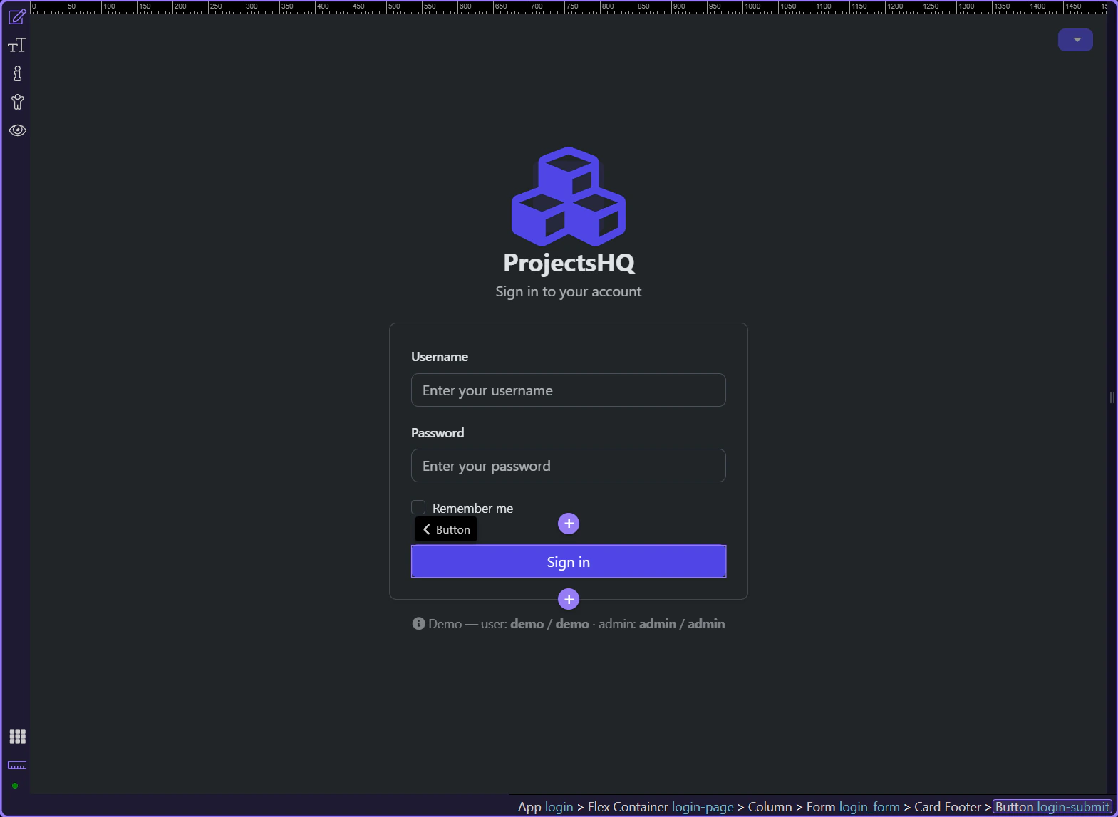 Section titled “Success leaves the page on purpose”A successful login should not simply clear the form and stay put. Demo Projects HQ redirects into the app because the user’s context has genuinely changed. That makes the success branch feel final instead of ambiguous.