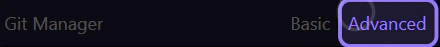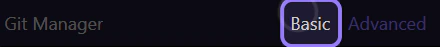 Understand how Git Manager represents uncommitted changes, commit history, refs, and commit details in Basic and Advanced view.