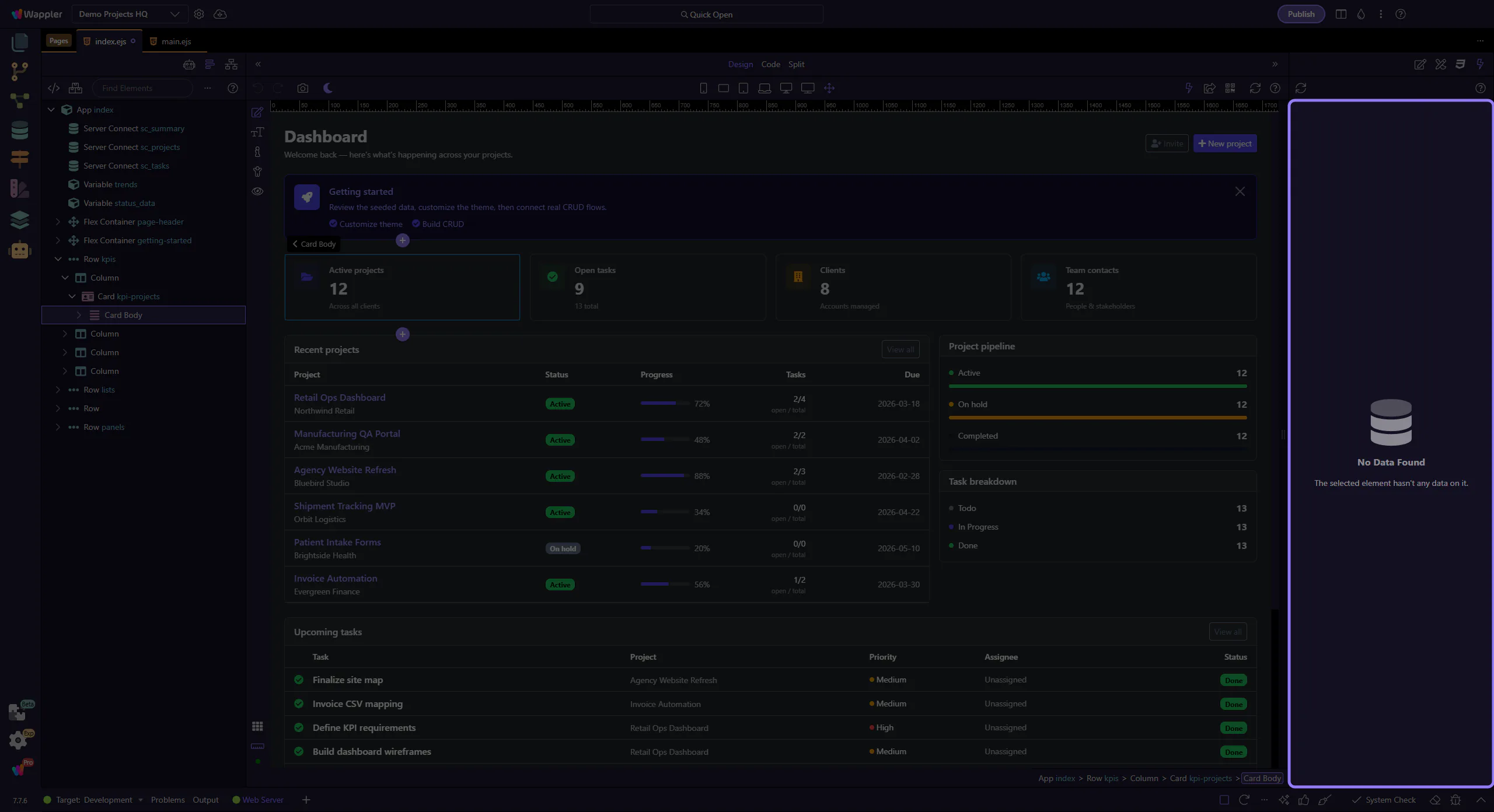 Learn how to select an element to inspect data in the Data panel.
