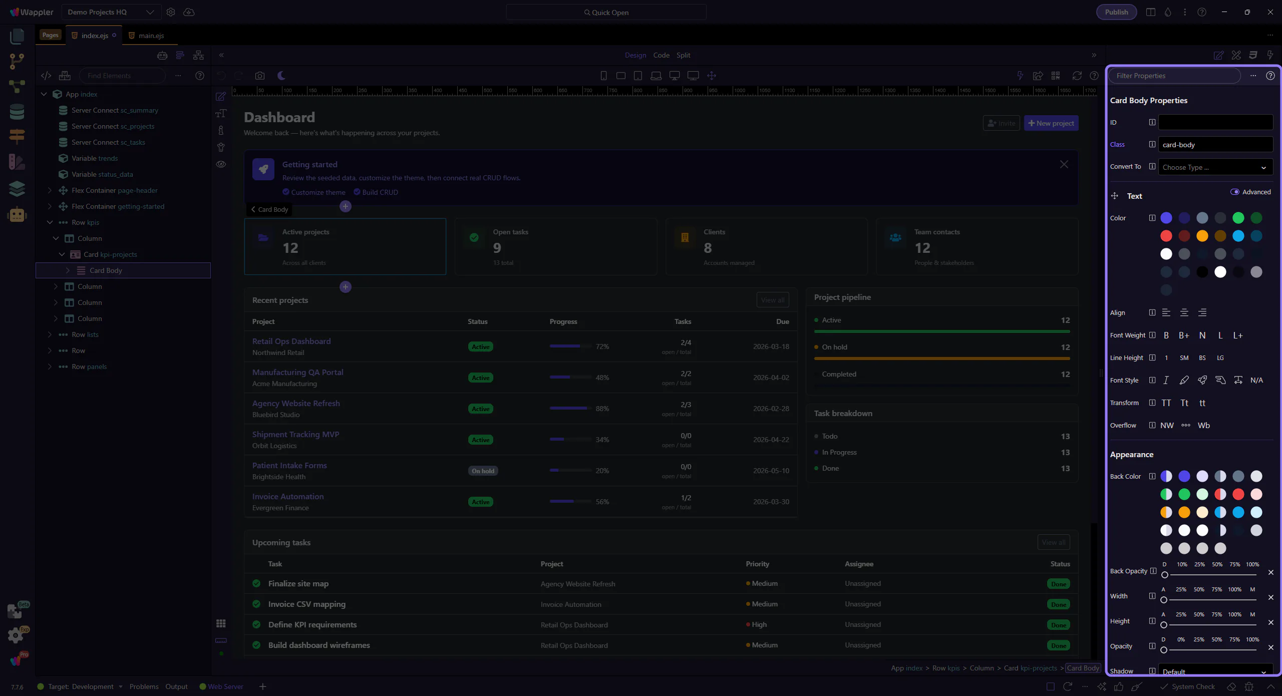 Section titled “Apply the change”Update the value. Wappler applies it to the current selection.
