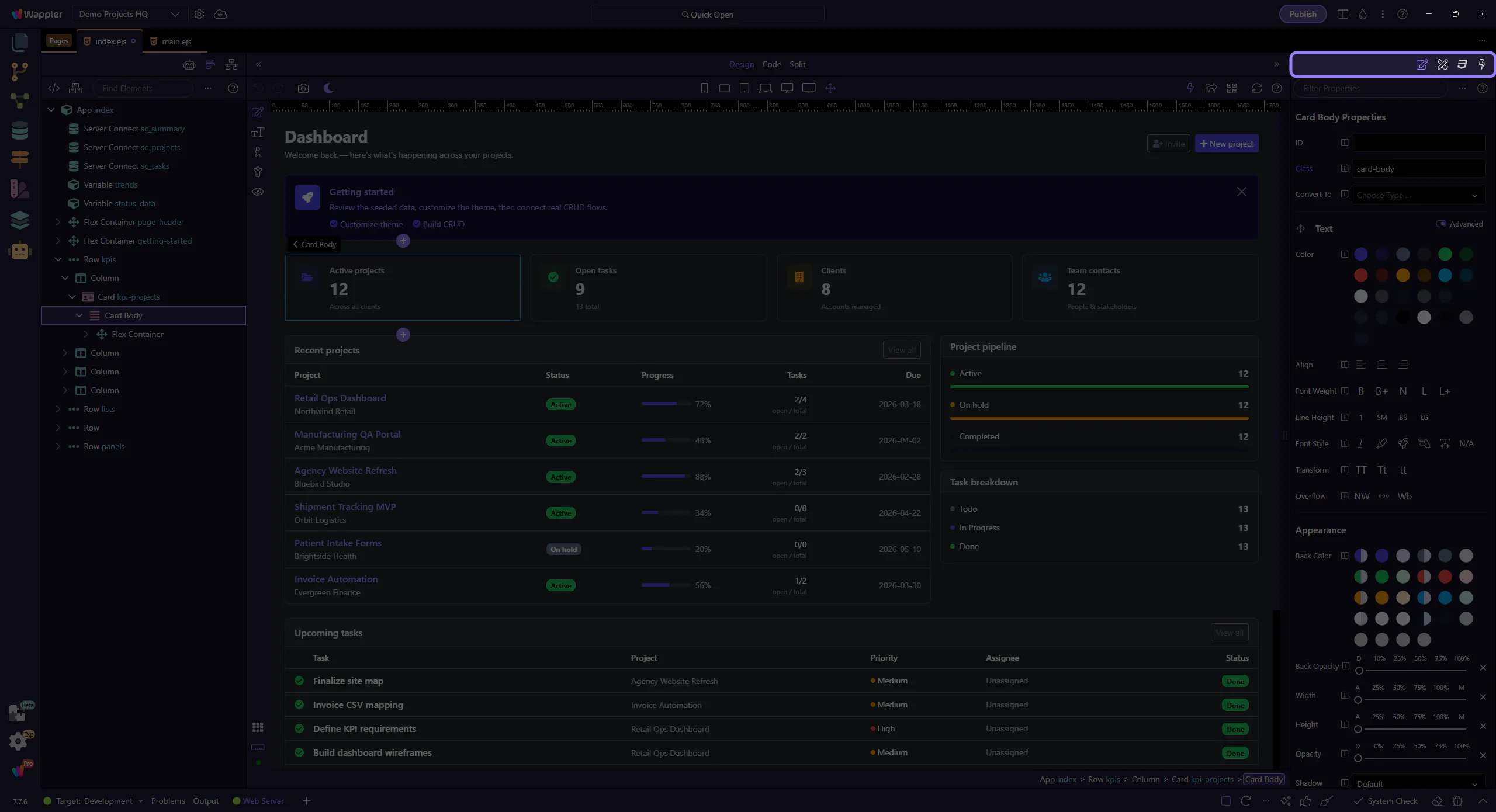 Section titled “Properties tab”Property binding makes more sense when you first see where selection and data-aware editing meet. This how-to starts from that context, then explains why opening the right panel is the key step before you connect an element property to dynamic data.