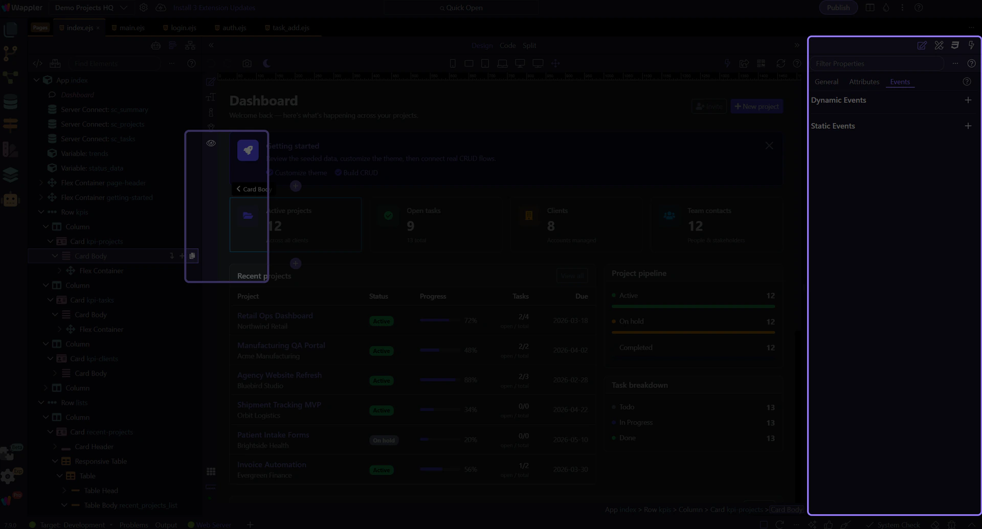Browse Design panel guides for layout controls, spacing presets, responsive tweaks, and inspector-driven page adjustments.