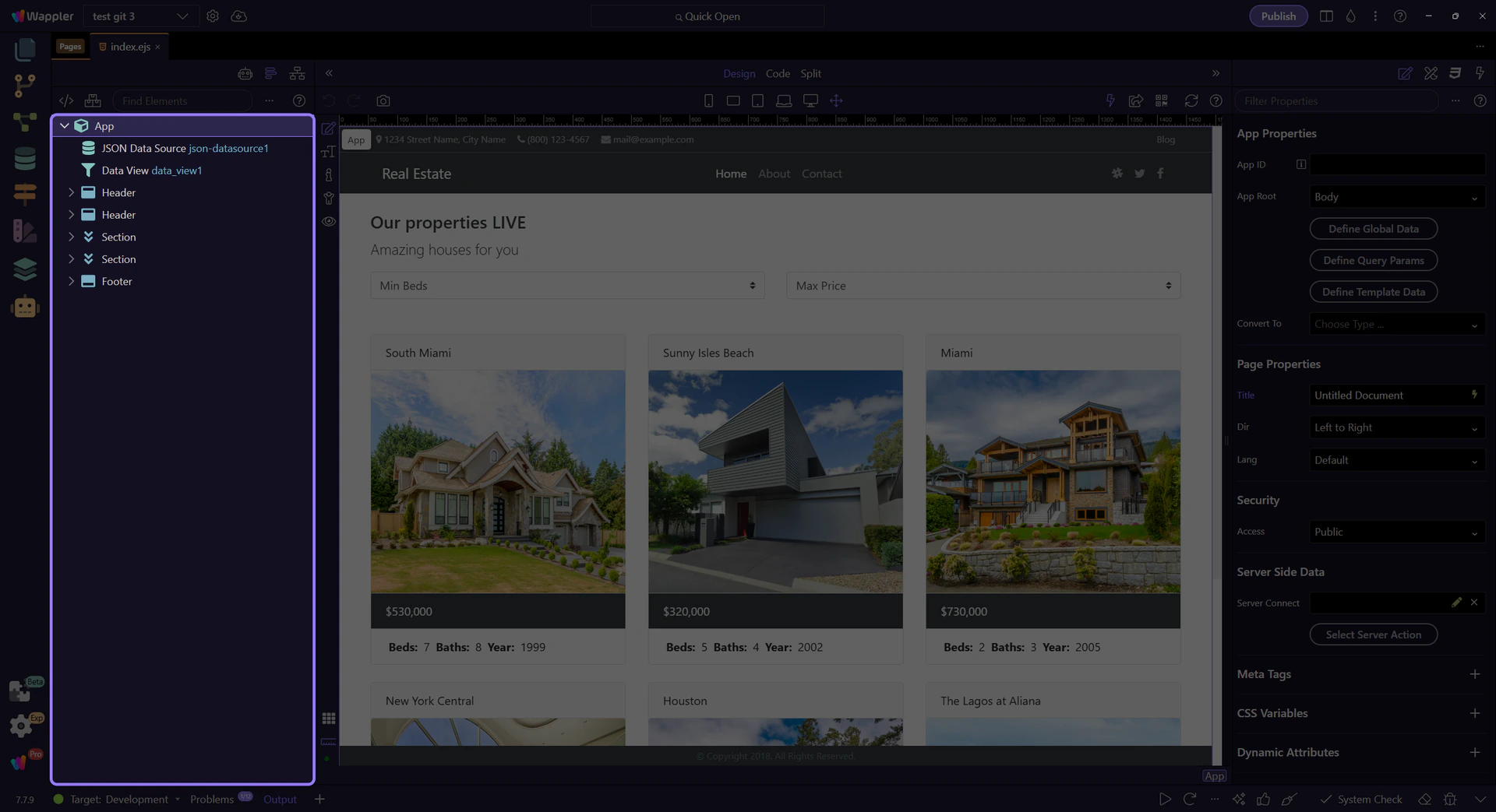 Reference tour for the App Structure panel: panel layout, navigation tools, element selection, and how to work through the page DOM hierarchy.