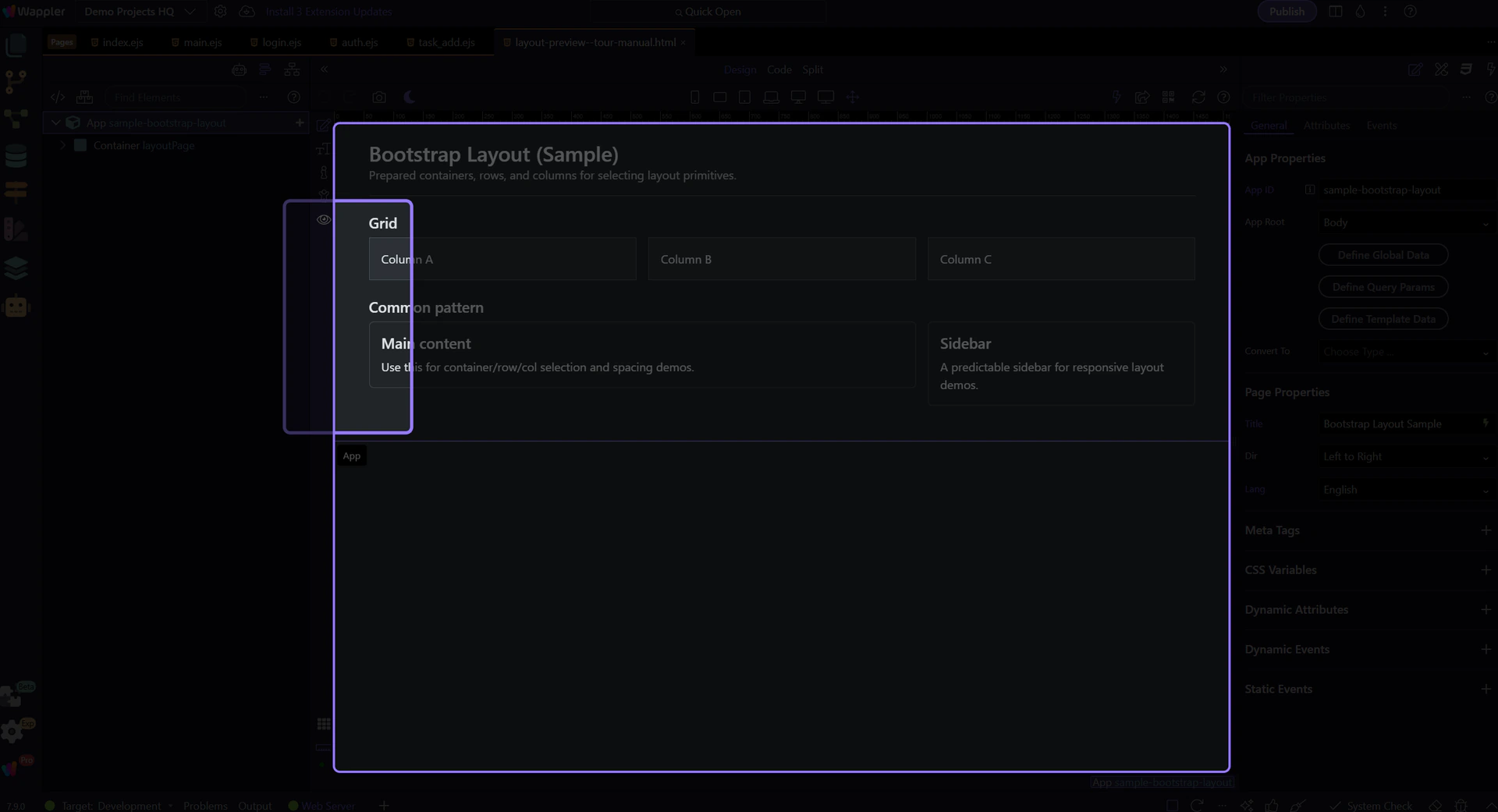 The next steps use a simple layout so Preview mode and the page panels are visible in a predictable state every time.