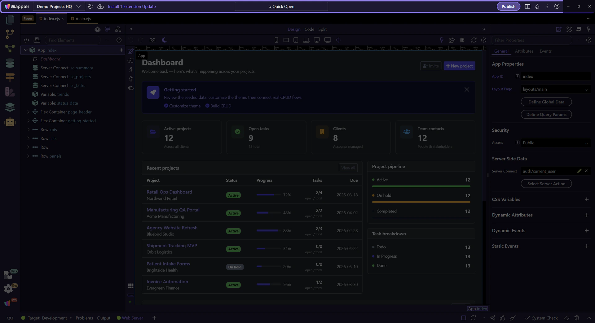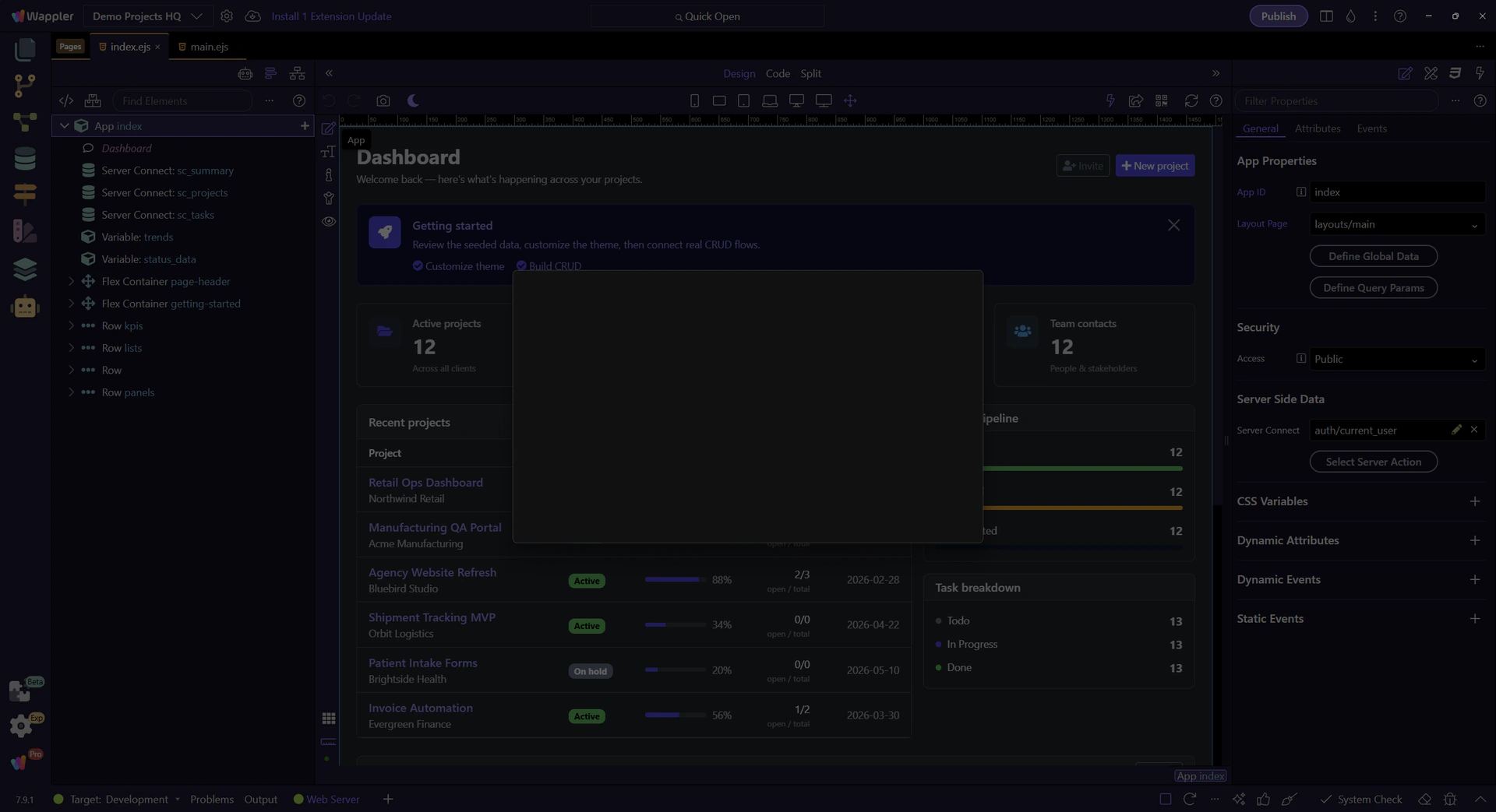 Enable this force-update toggle when you want Wappler to replace the project’s App Connect and component framework files with a fresh copy.
