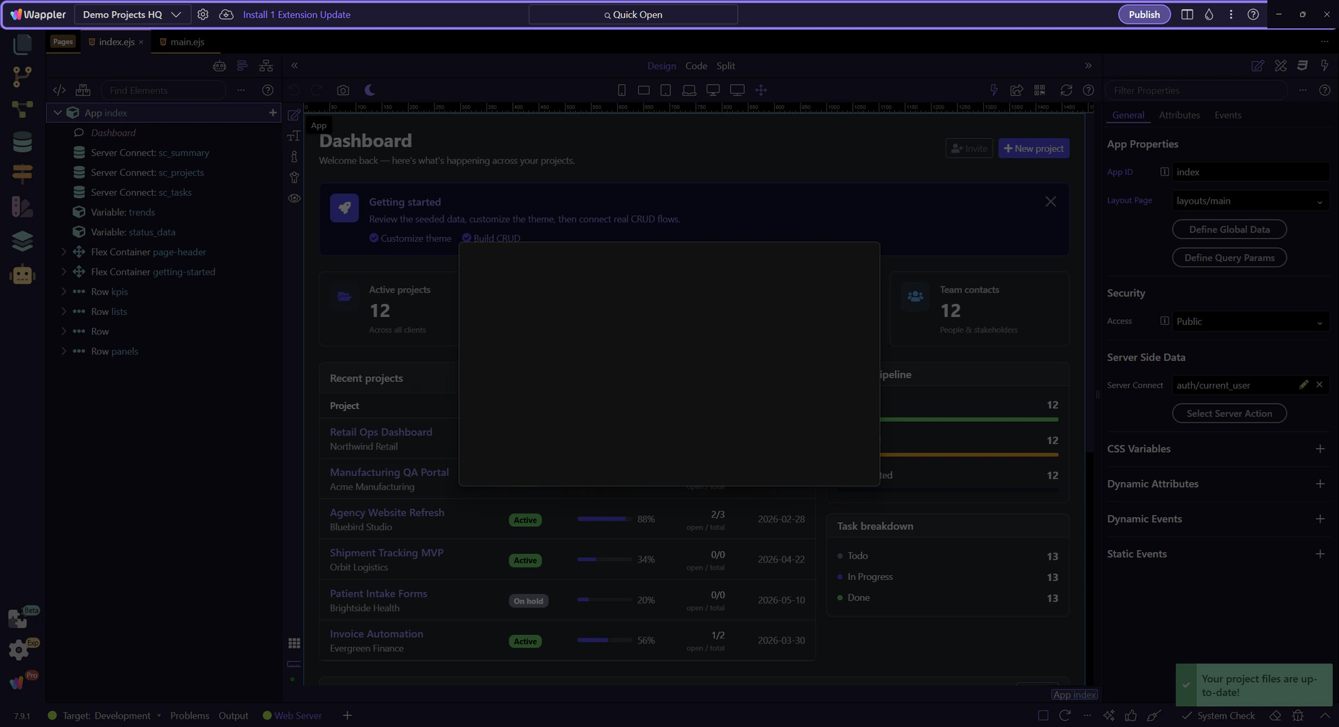 Use Project Updater to force-refresh App Connect and Server Connect framework files for the current project when you need a clean framework reset.