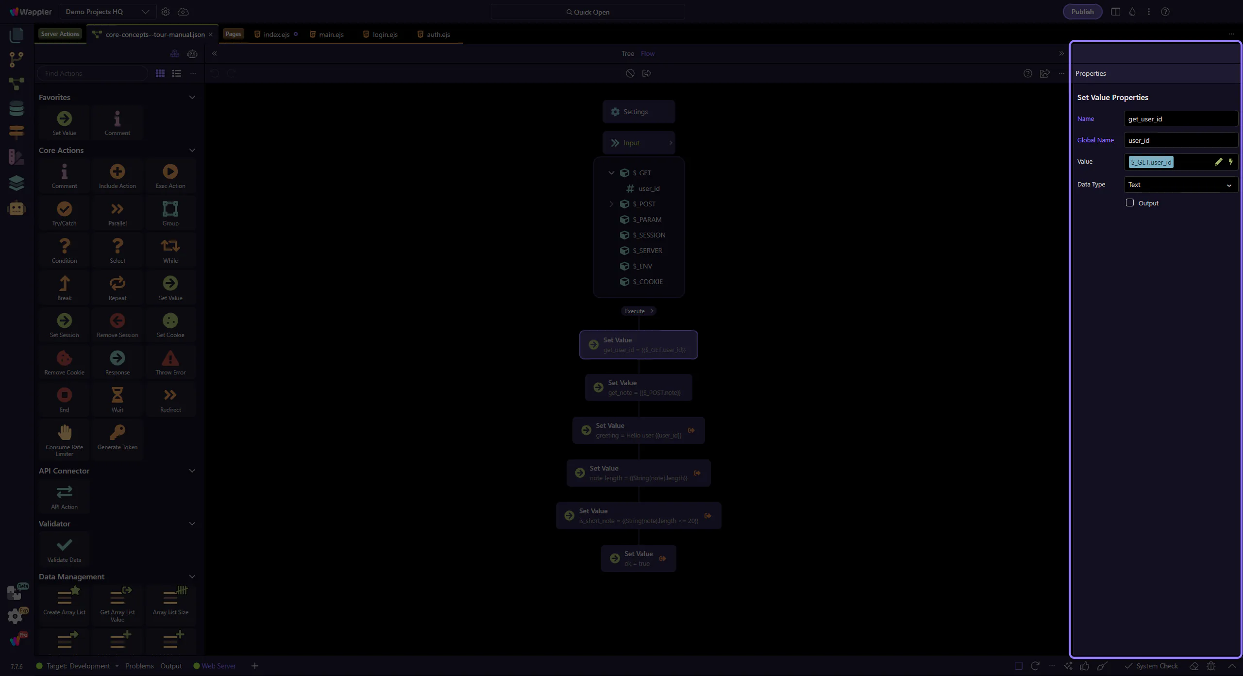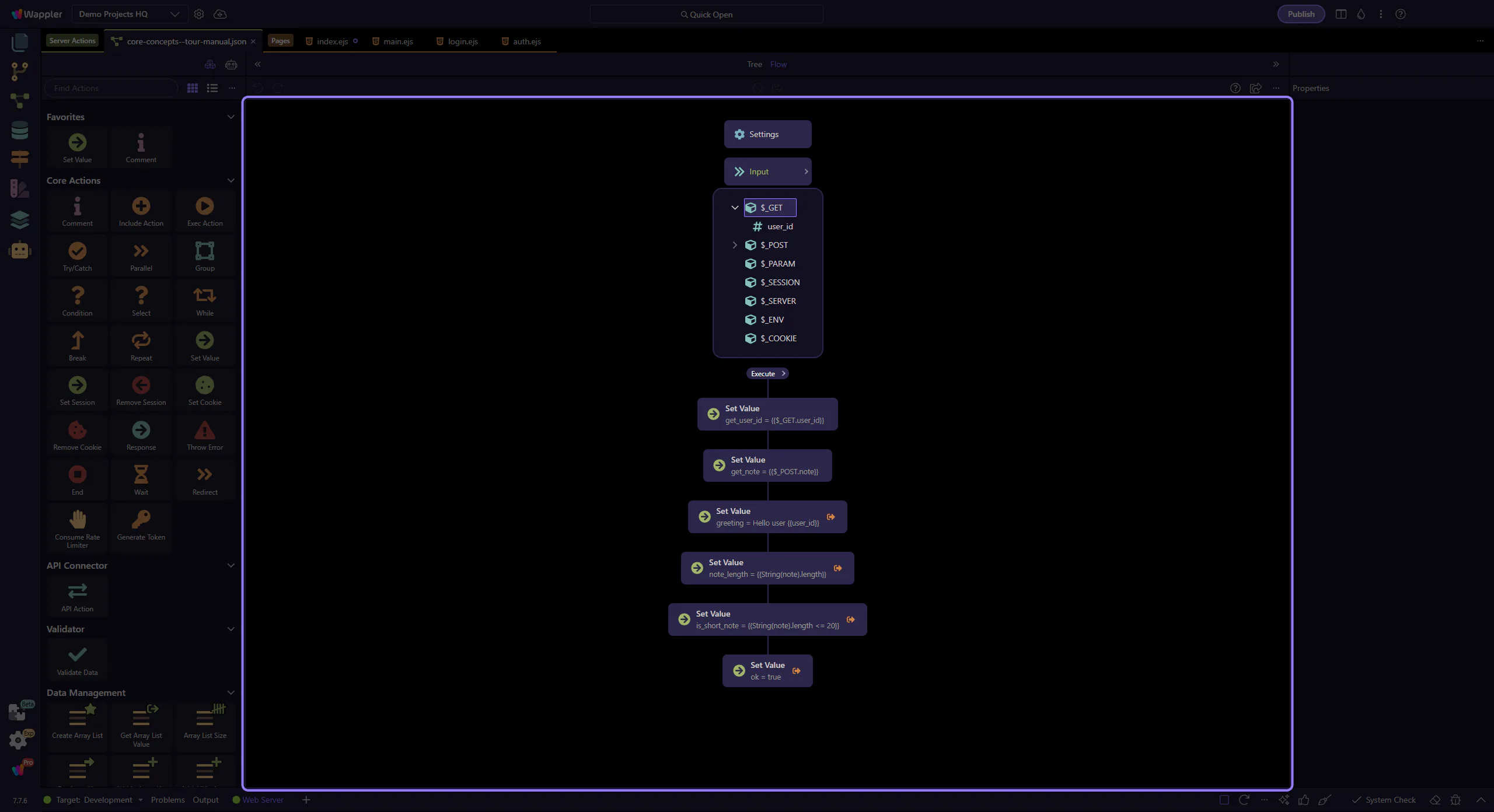 Section titled “Where $_GET shows up in the tree”In the editor tree, global input “scopes” are shown as nodes like $_GET, $_POST, $_PARAM, $_SESSION, and $_COOKIE.
