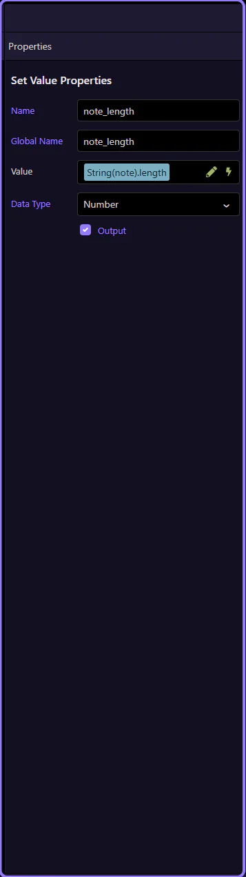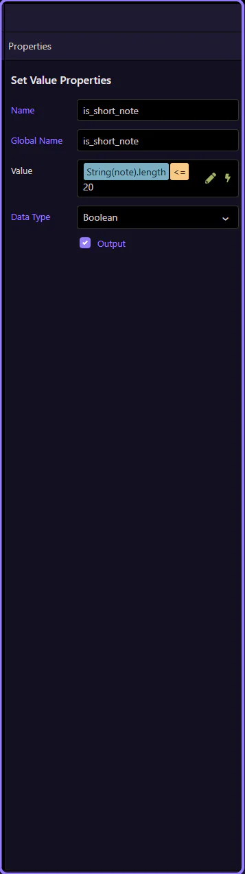 Section titled “Expressions + Output Type (number/text/boolean)”This Set Value step computes a derived value.