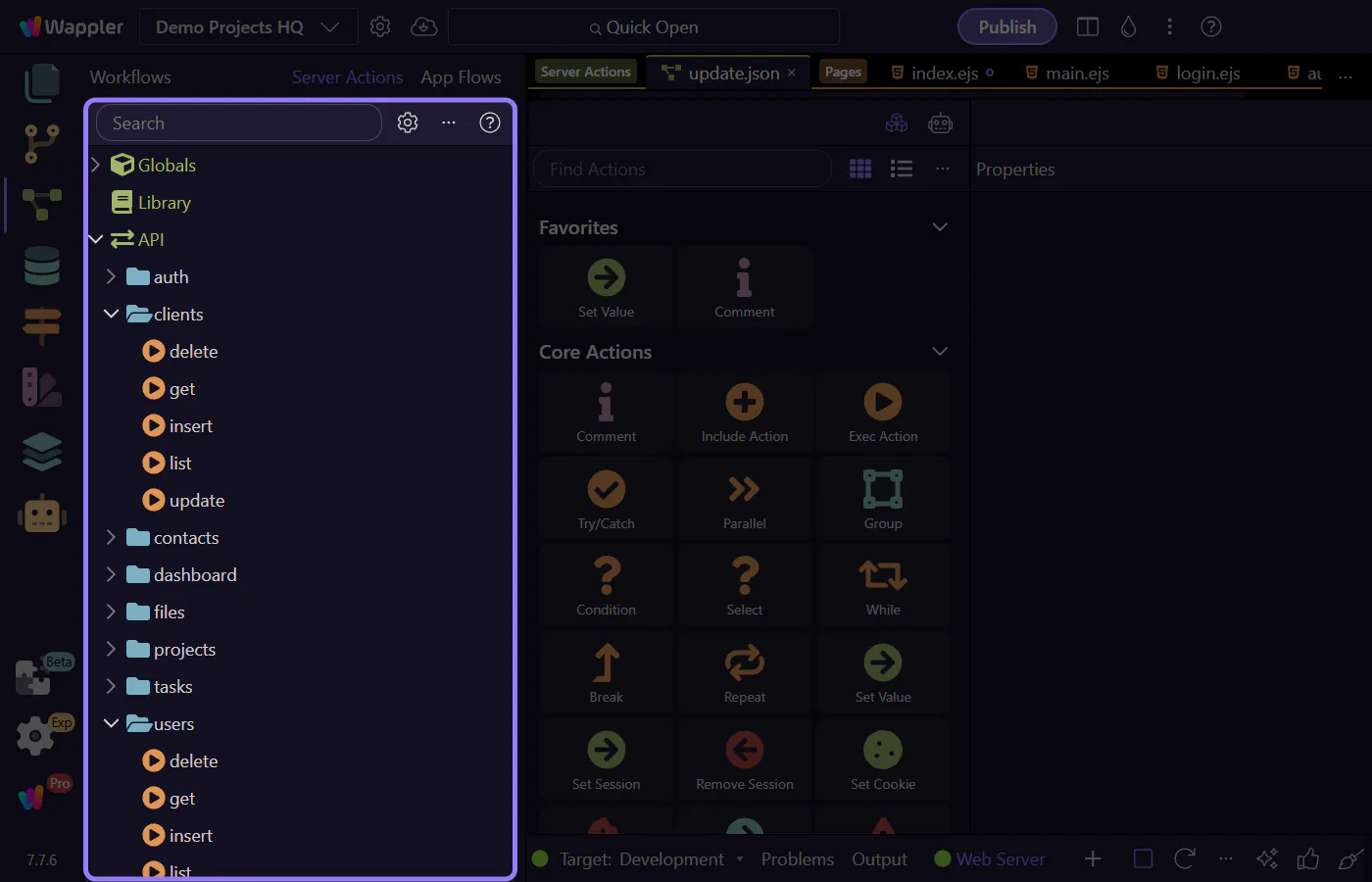 We call API actions “endpoints” because they’re reachable by URL, but in Wappler you’ll usually think of them as Server Connect Actions.