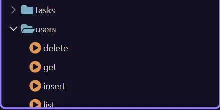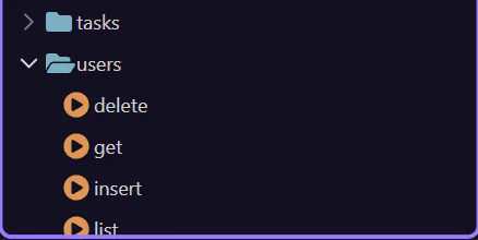 Use folders per feature area (for example users/, orders/, admin/). Use consistent action names (for example list, get, create, update, delete). Put shared logic in Library actions and call them from API actions.
