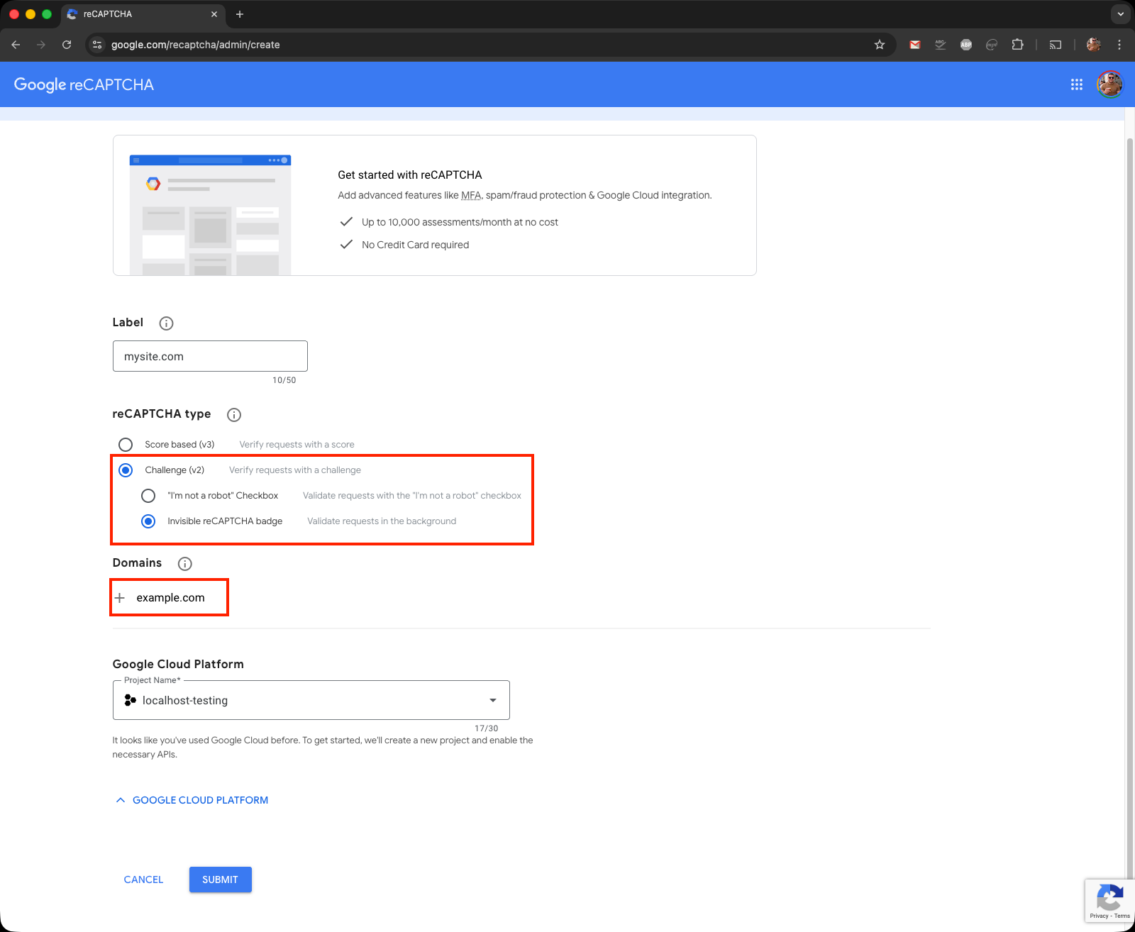In this tutorial, we’ll be using the Invisible reCAPTCHA type.