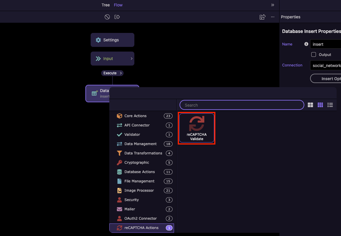 Choose reCAPTCHA Actions > reCAPTCHA Validate: